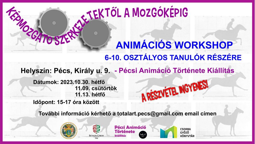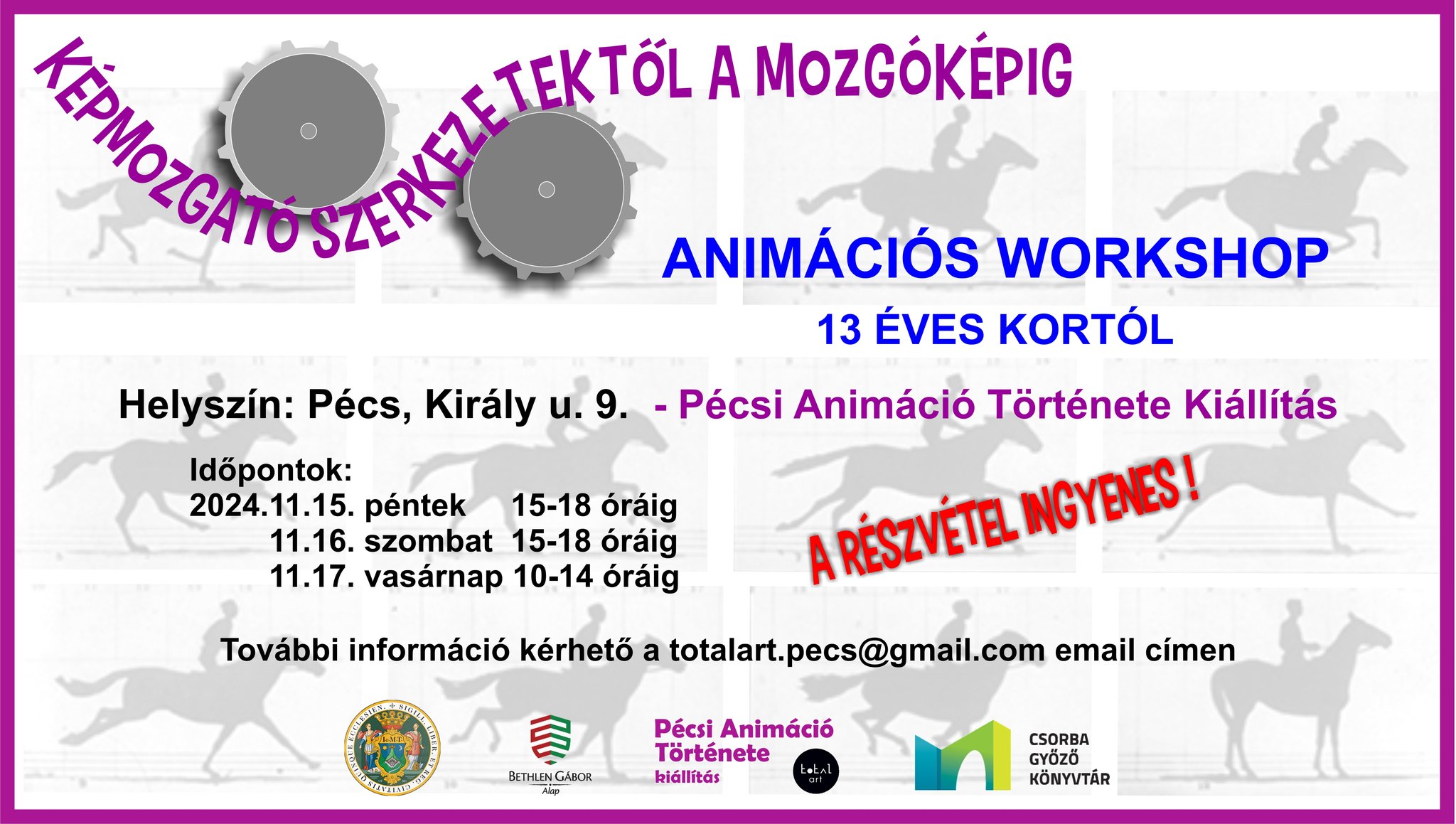 A Total Art Egyesület folytatja a tavalyi évben elindított, „Képmozgatő szerkezetektől a mozgóképig” című animációs workshopot.