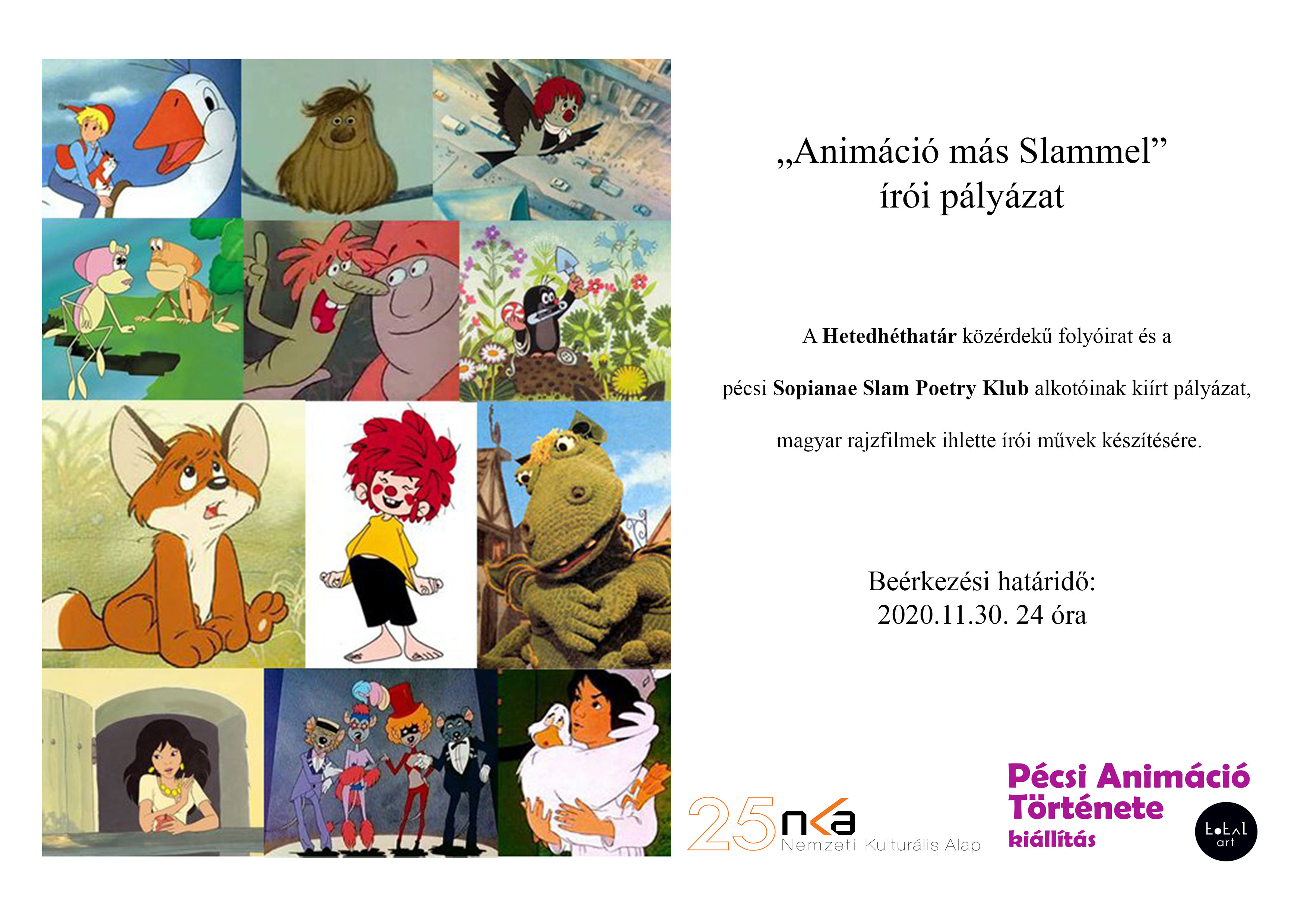 Egyesületünk a Hetedhéthatár közérdekű magazin és a pécsi Sopianae Slam Poetry Klub alkotóinak írt ki pályázatot, magyar rajzfilmek ihlette írói művek készítésére.
